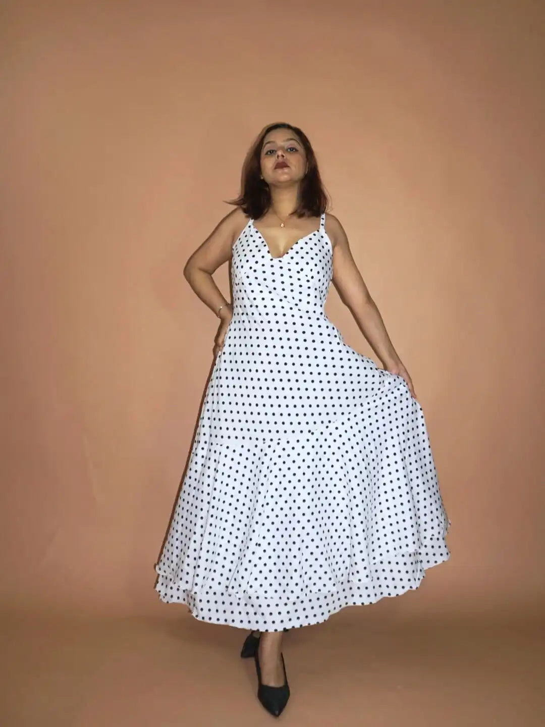 The straps leave you bare and light, while the layers at the hem move like ripples of water.